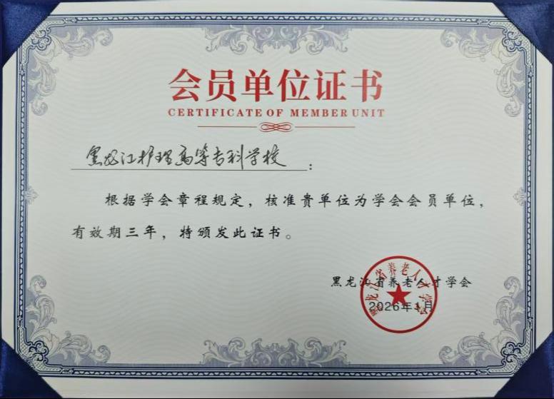 此次当选,是省级行业组织对学校践行以人民为中心发展思想、履行社会责任成效的权威认可,更是学校服务全省养老事业发展、助力健康龙江建设的重大契机。学校将深入贯彻落实《黑龙江省深化养老服务改革发展的若干措施》要求,以学会为平台,主动参与养老服务行业标准制定、人才培养模式创新、技术成果转化等工作。通过深化校地协同、校企合作,共建标准化实习实训基地,定向培养输送适配龙江养老需求的高素质技术技能人才;充分发挥专业资源优势,开展养老行业在职人员能力提升培训、社区养老服务指导、智慧养老模式创新等公益服务,全力推动全省养老服务专业化、标准化、智能化水平提升。