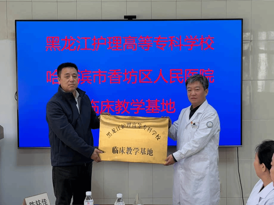 交流期间,我校为香坊区人民医院正式授予教学实习基地牌匾。香坊区人民医院院长孙洪涛、副院长于存钢,以及医务科、护理部、检验科、康复科等相关科室负责人参加座谈。双方围绕学生岗位实习安排、临床人才联合培养等内容深入交流,细化实习管理、临床带教等事项,达成合作共识。
